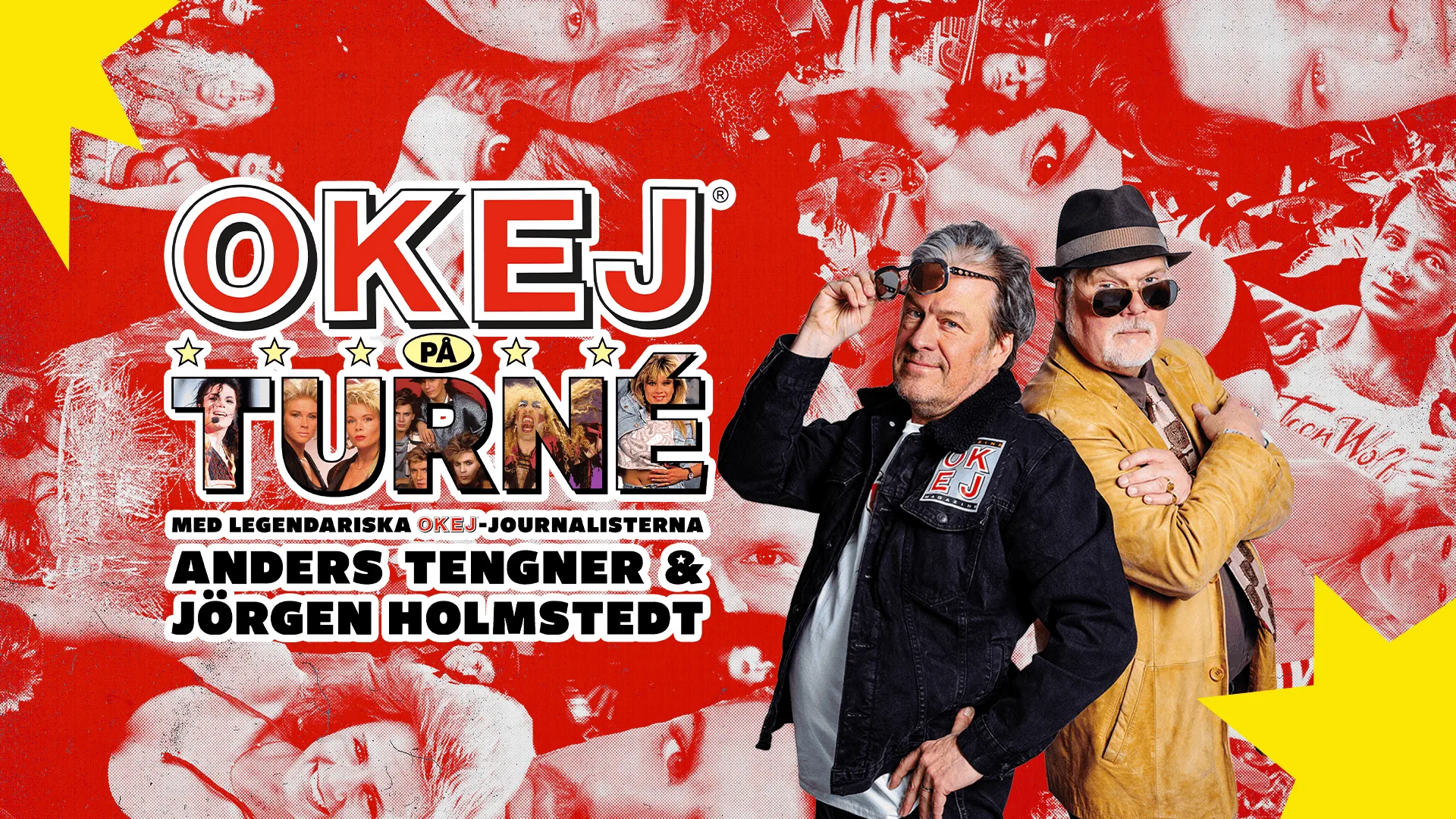 Nu tar OKEJ nästa steg och drar på turné. Det blir en fet spoken word-show, laddad med hårdrock, synt, pojkband, schlager, film och tv – plus ett bildspel med tidigare opublicerade bilder från OKEJ:s legendariska fotografer.
